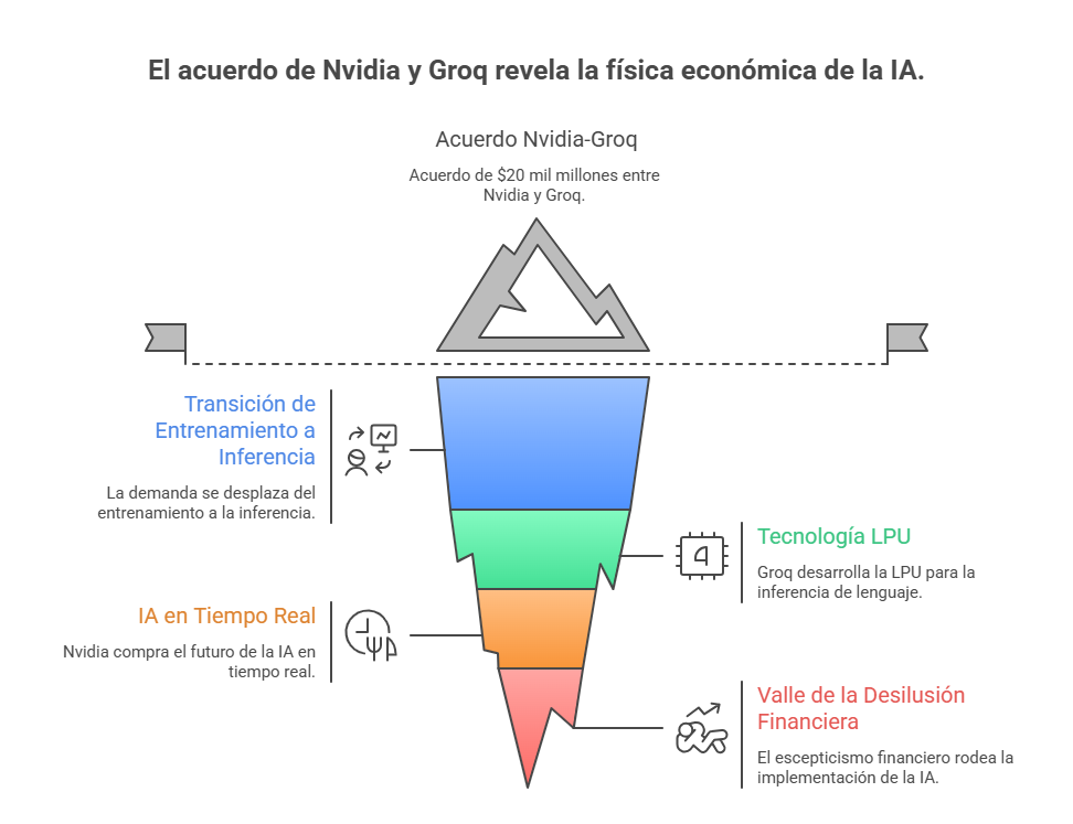 La noticia financiera y tecnológica más relevante de la semana es el acuerdo masivo entre Nvidia y Groq, valorado en 20.000 millones de dólares. Este movimiento no es una simple adquisición; es una señal tectónica sobre hacia dónde se dirige la industria. La Transición de Entrenamiento a Inferencia Para entender la importancia estratégica de este […]